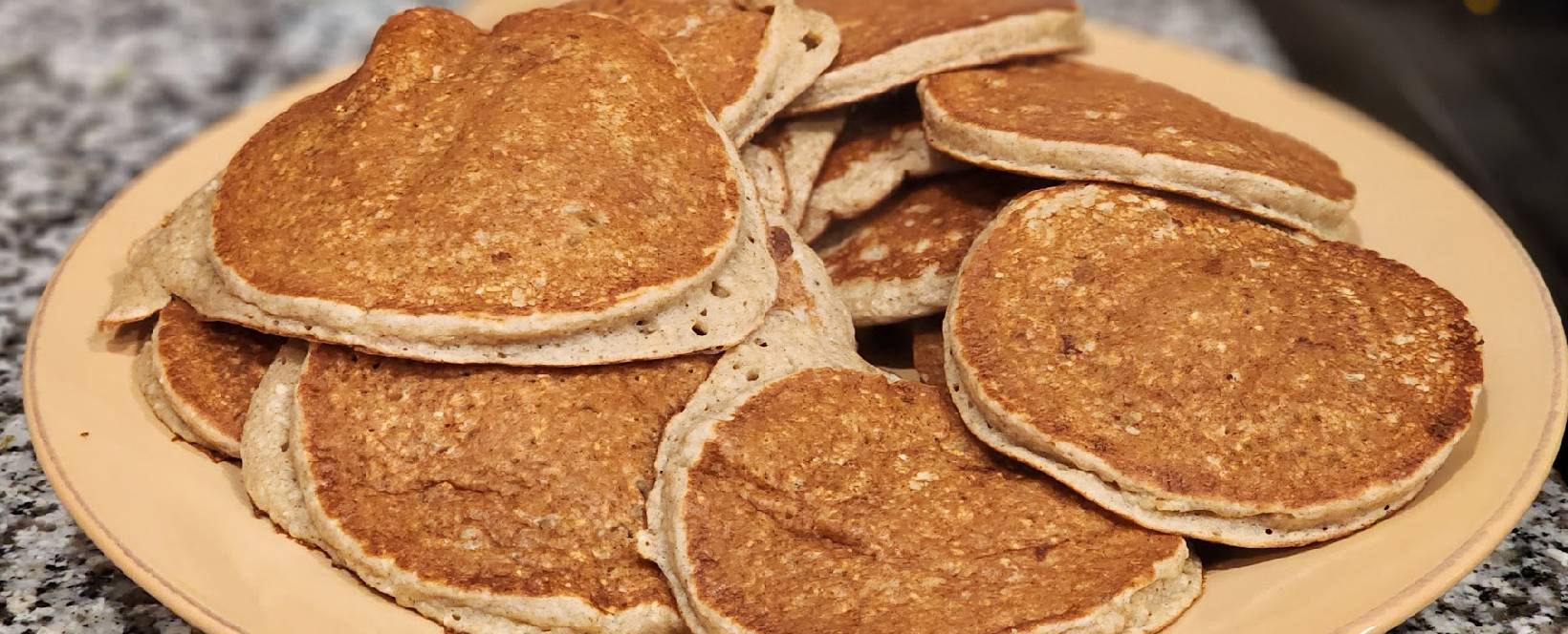 These healthy banana oat protein pancakes are a weekly meal in our house. We don’t actually have them for breakfast though. Every Friday night, I take whatever bananas the kids haven’t eaten and make a big batch of these pancakes.
