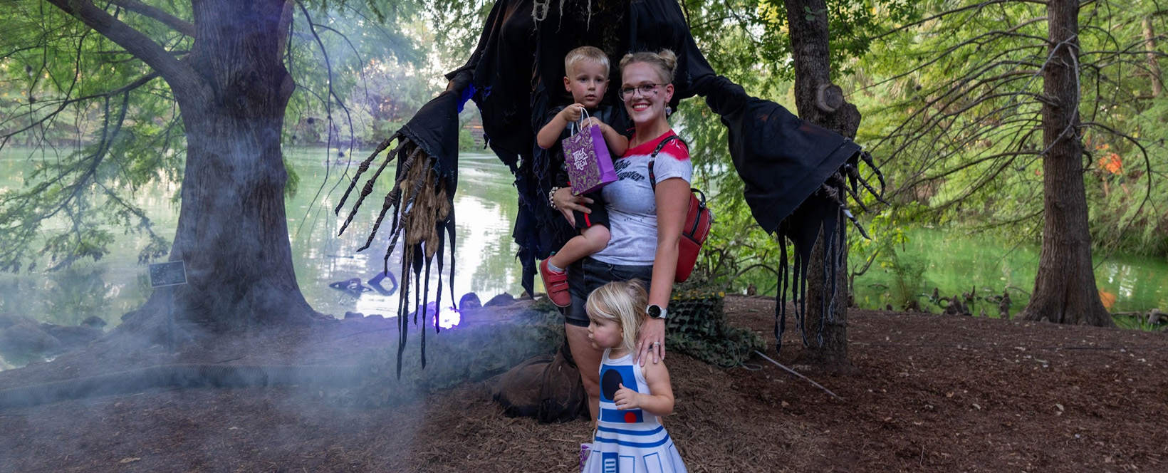 A mere two days after the whole library meltdown mayhem due to sensory issues, Nathan and I took Orson and Nova to Happy Frights at San Antonio Botanical Garden. The kids were so excited for some family-friendly, spooky thrills and some pre-Halloween trick-or-treating.
